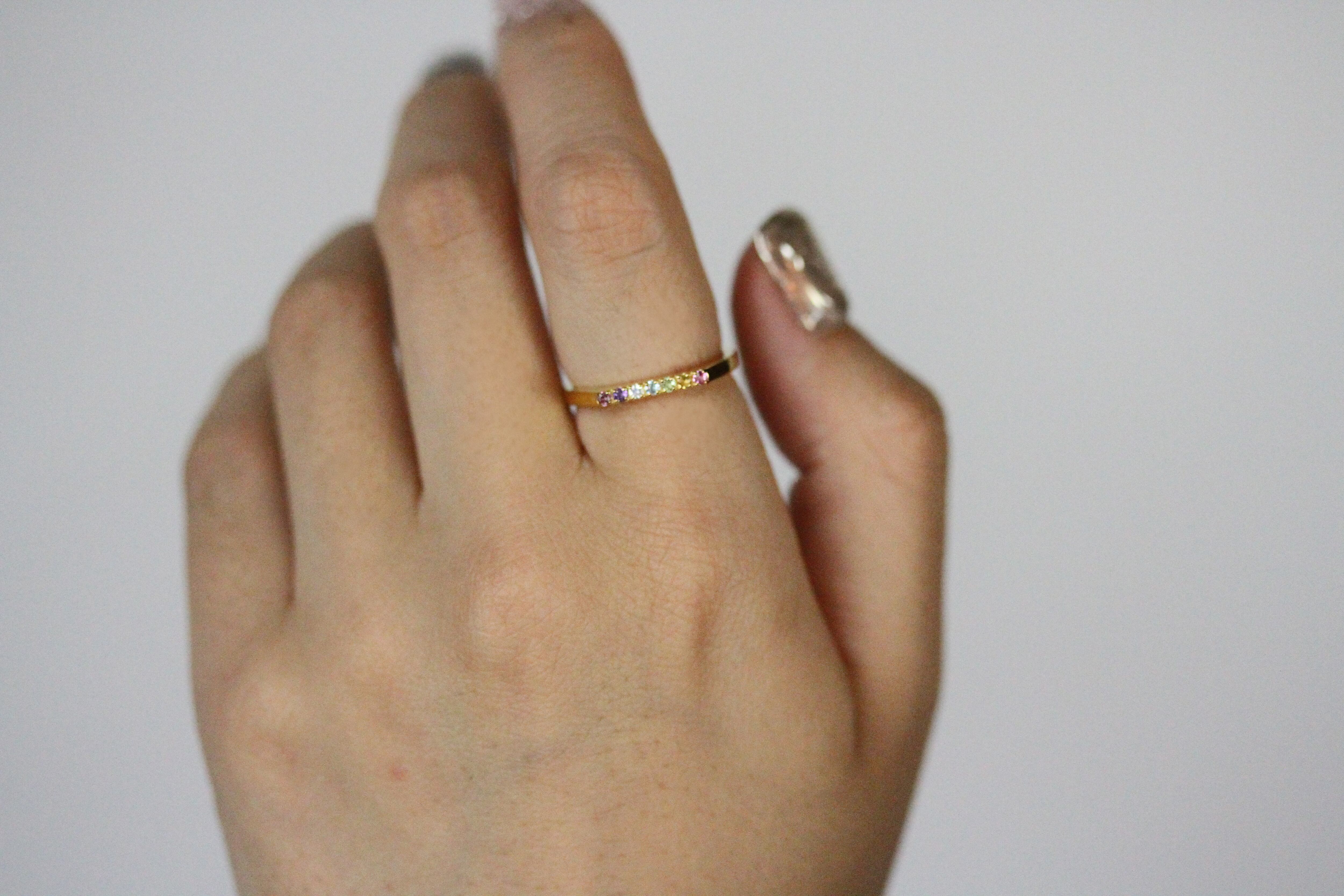シンプルなフォルムなのでお手持ちのリングと重ね付けして