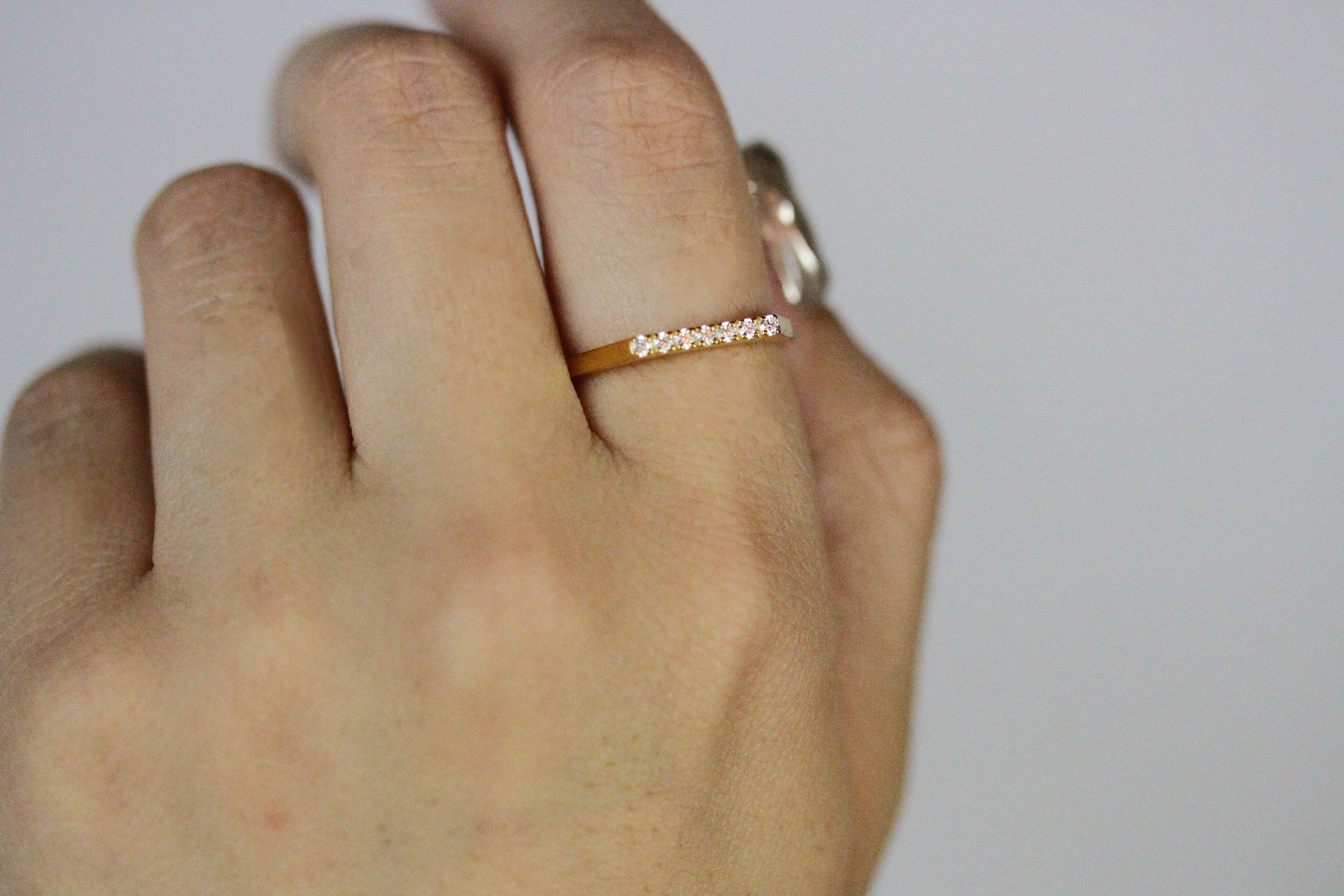 シンプルなフォルムなのでお手持ちのリングと重ね付けして