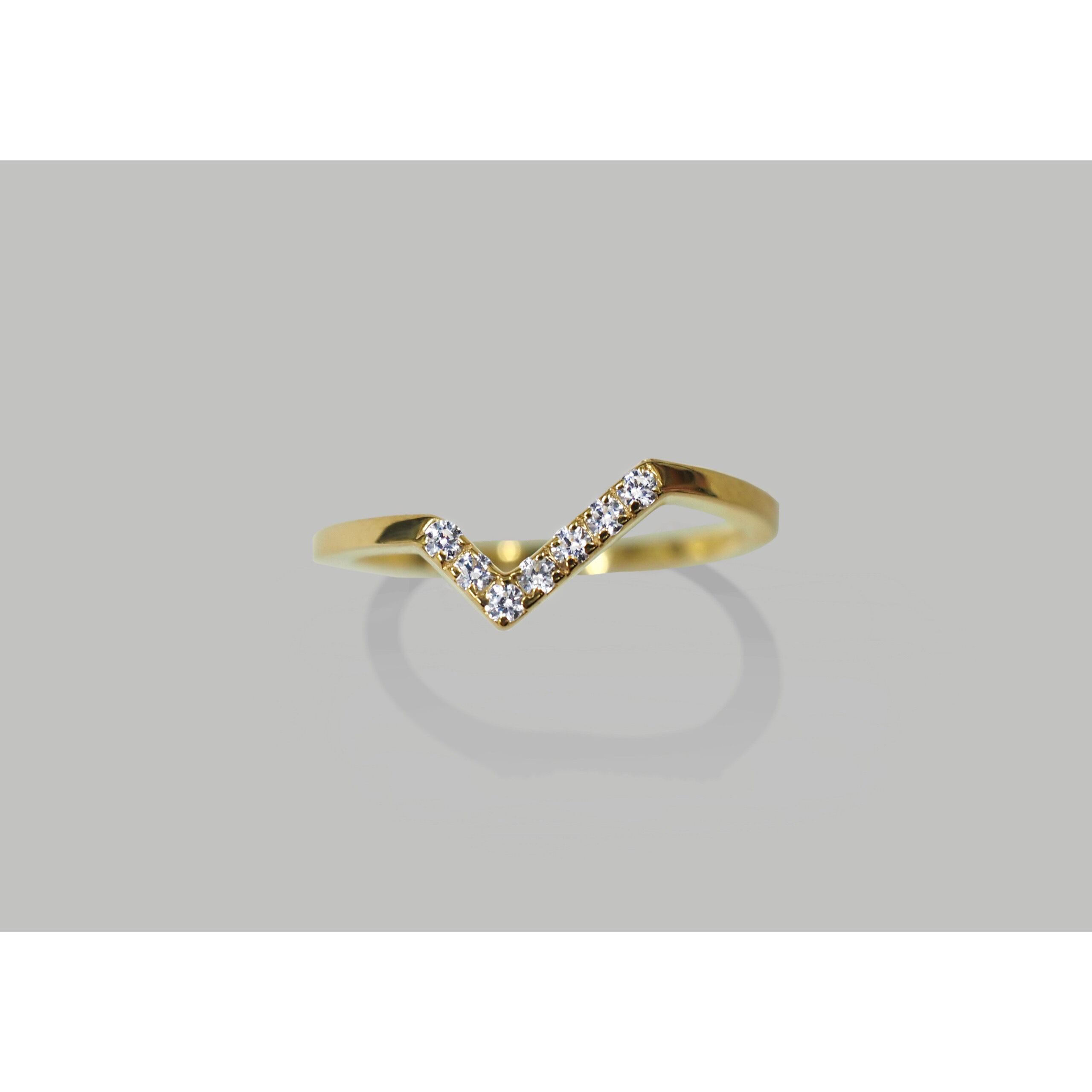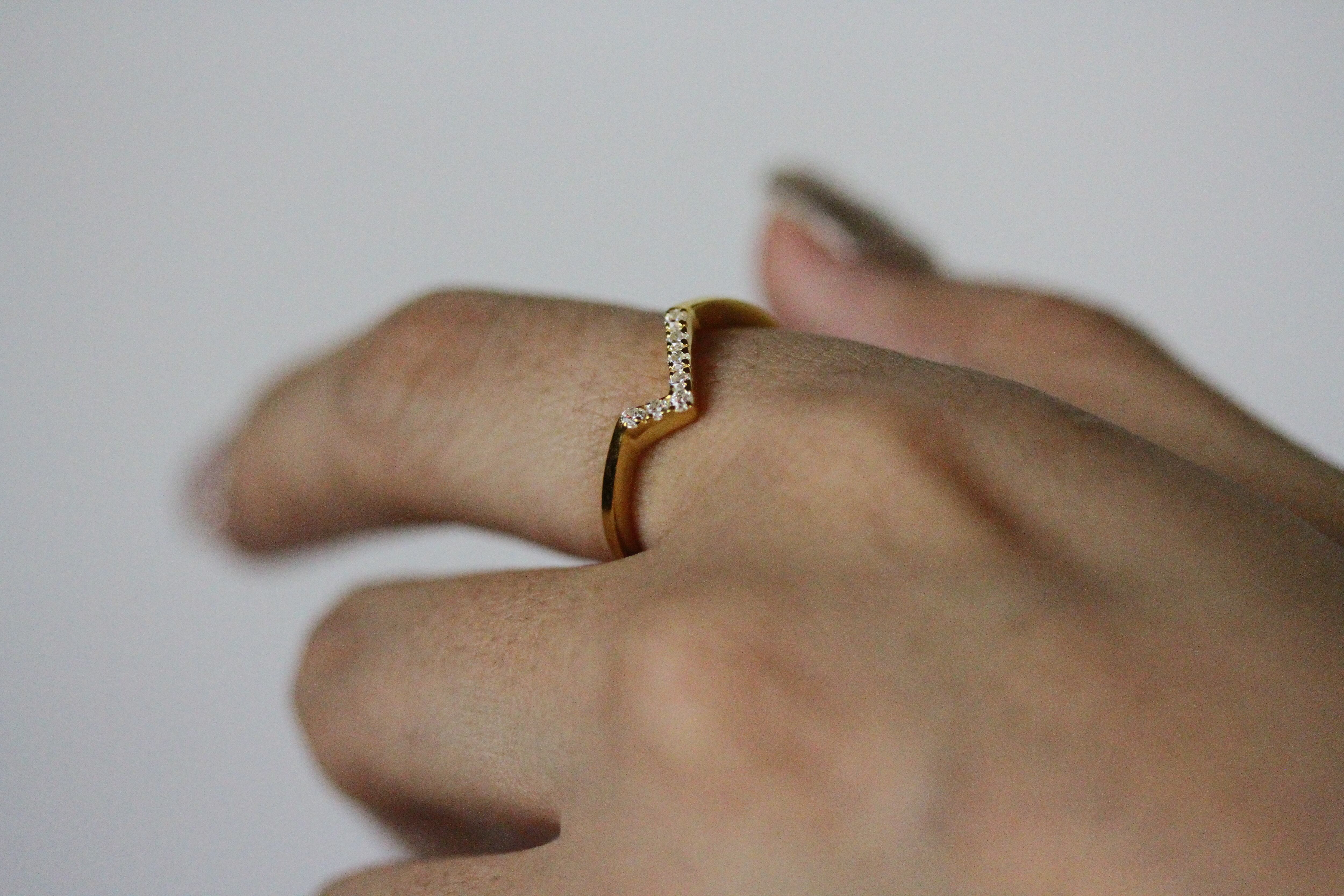 よく見かけるV字リングとは違い、アシンメトリーなフォルムですので個性が引き立ちます。