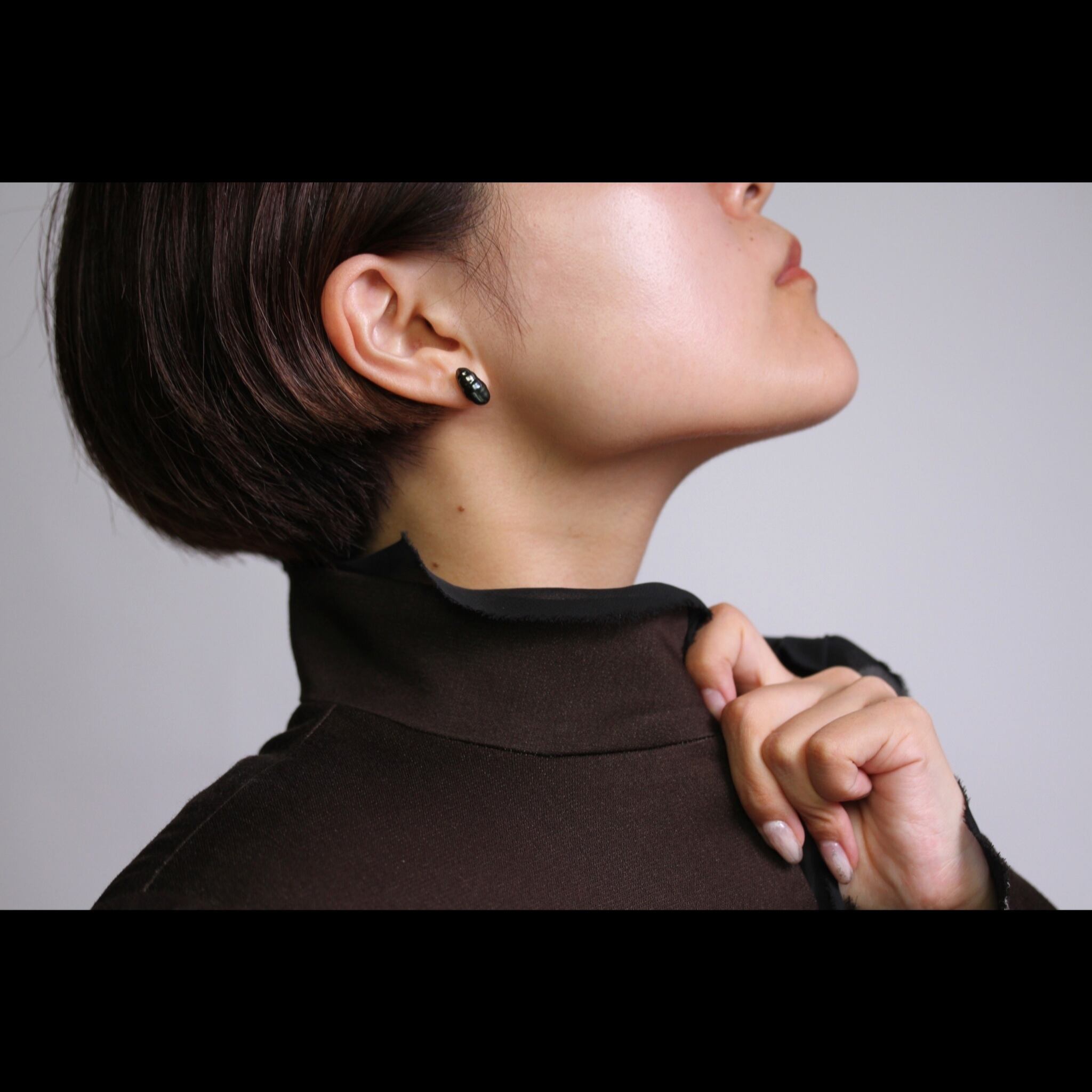 セカンドホールにルビーやダイヤ等のピアスを着けてコーディネートをすると