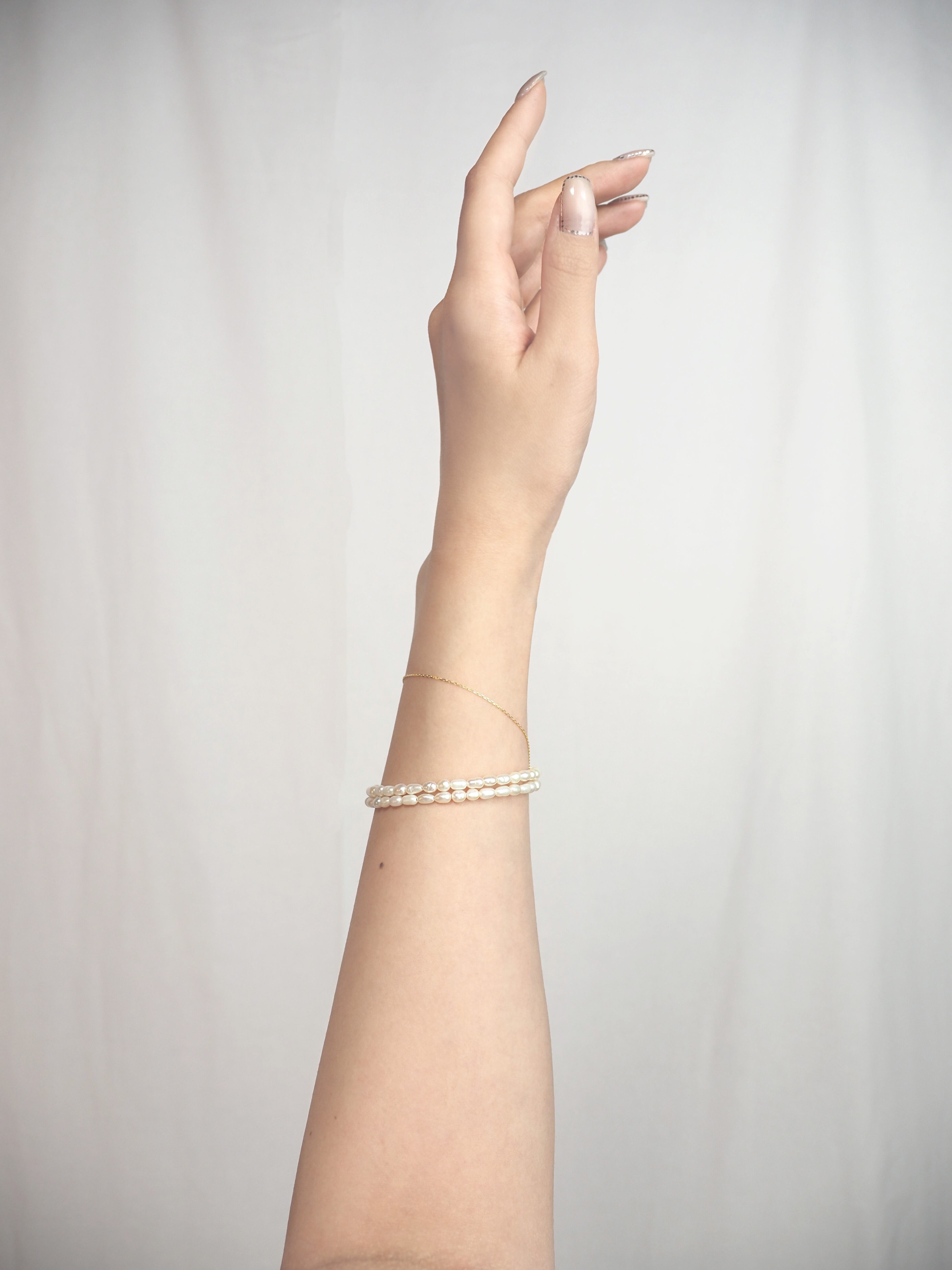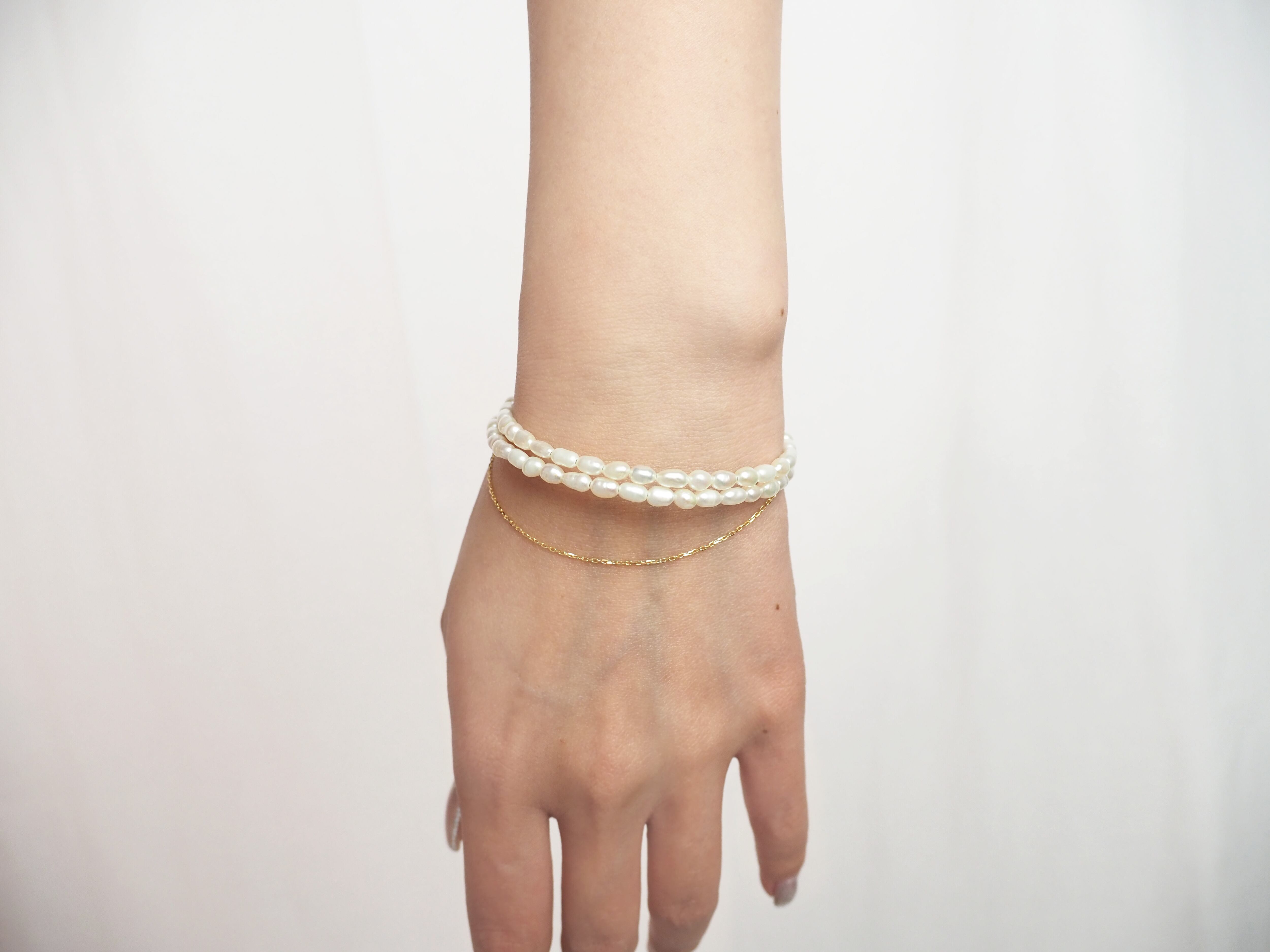 【一点物/FREE SIZE】K18チェーン/淡水パールブレスレット