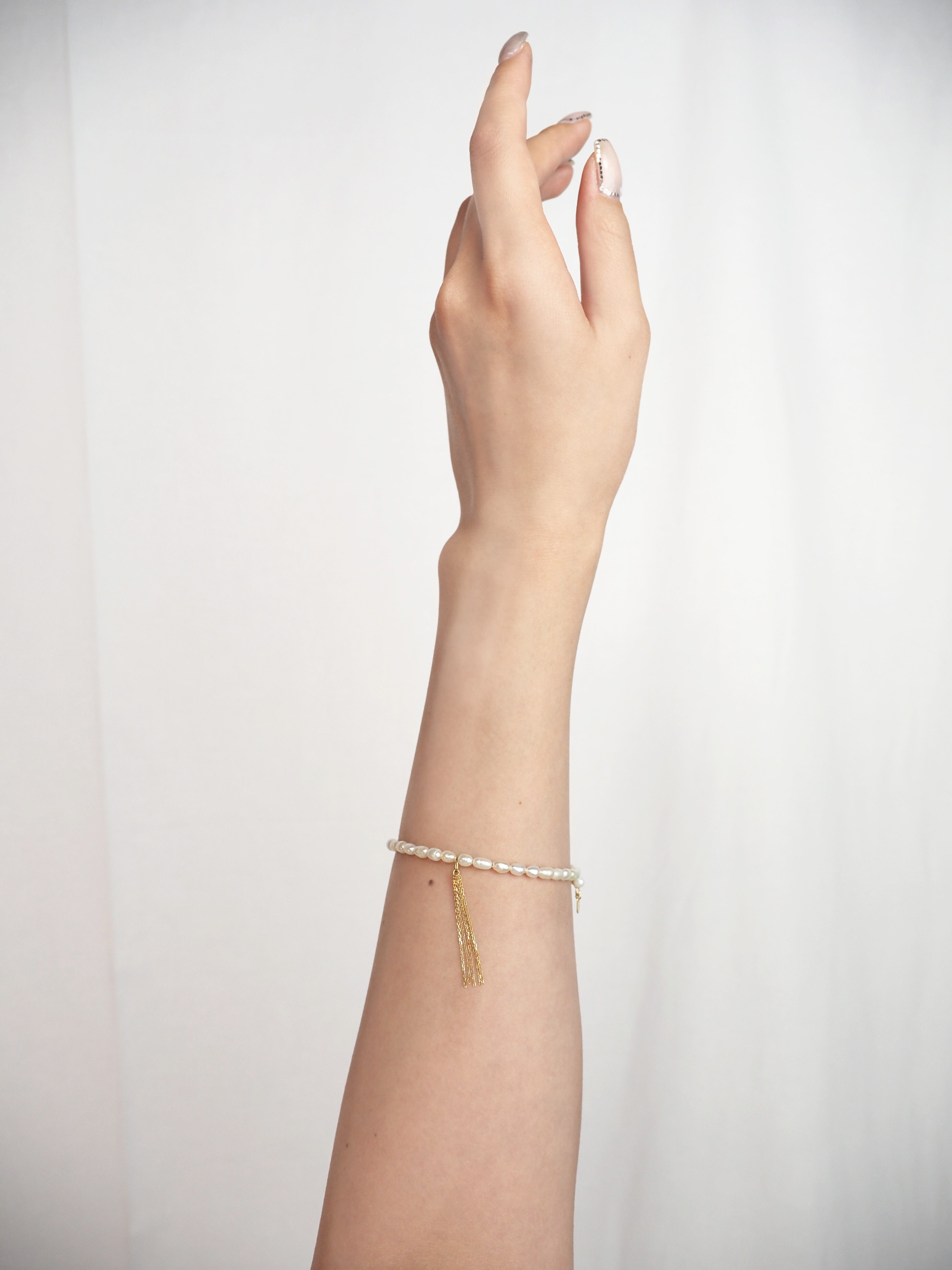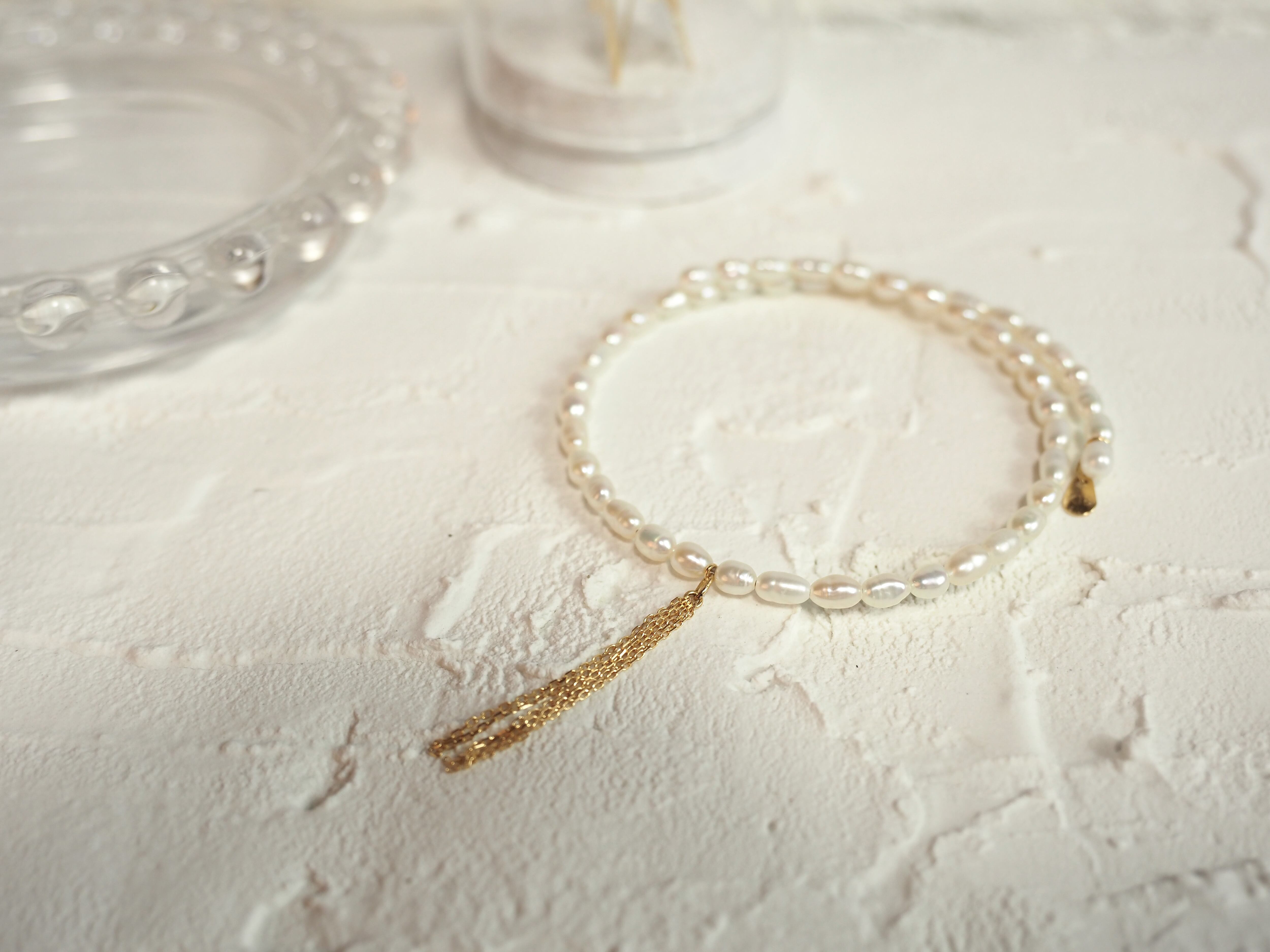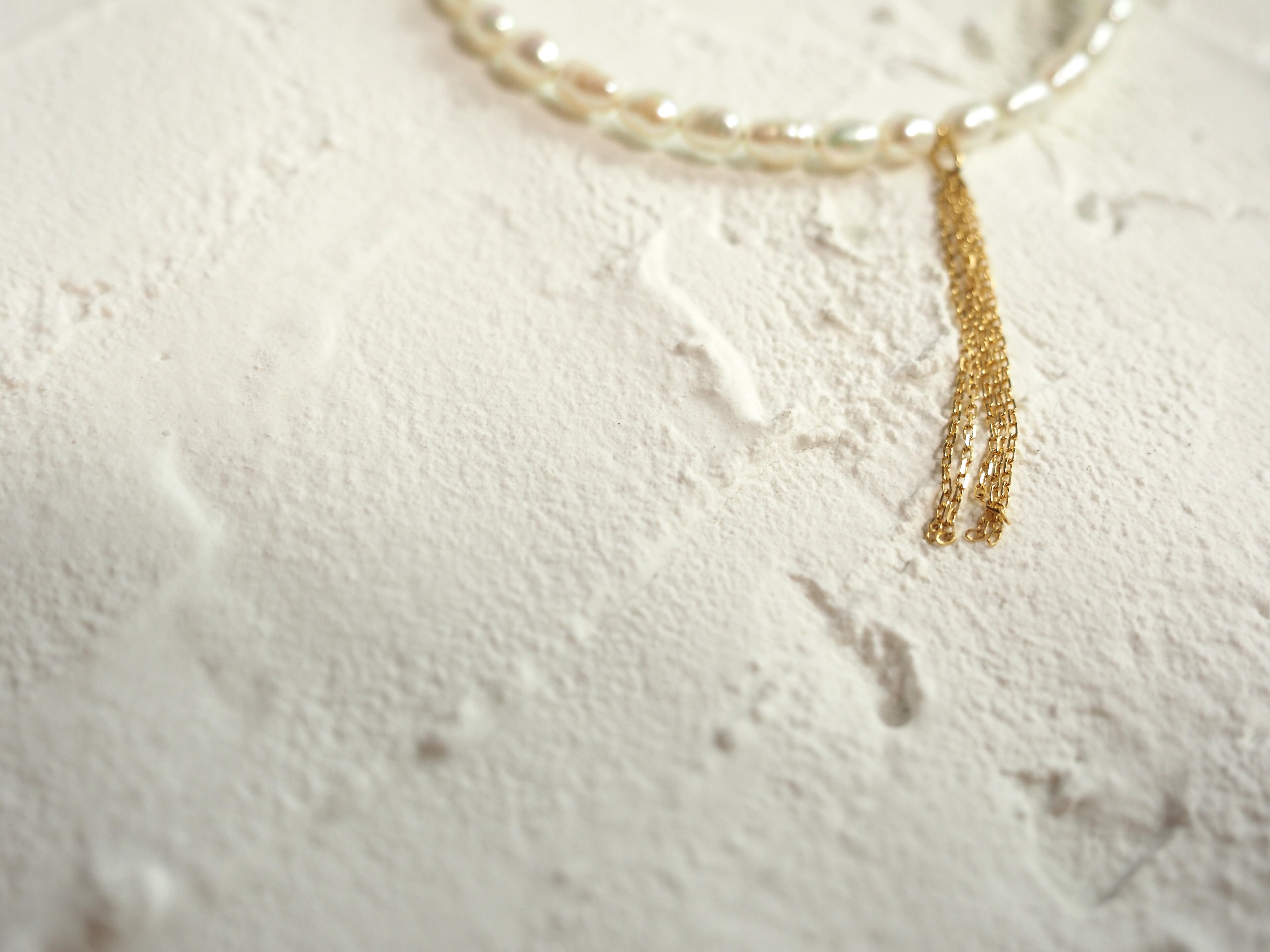 【一点物/FREE SIZE】K18チェーン/淡水パールブレスレット